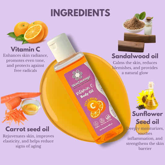 SkinCourage Vitamin C Body Oil | Intense Moisture & Instant Glow | Non Greasy & Lightweight | Refreshing Citrusy Fragrance | Soft & Nourished Skin | For All Skin types - 100ml