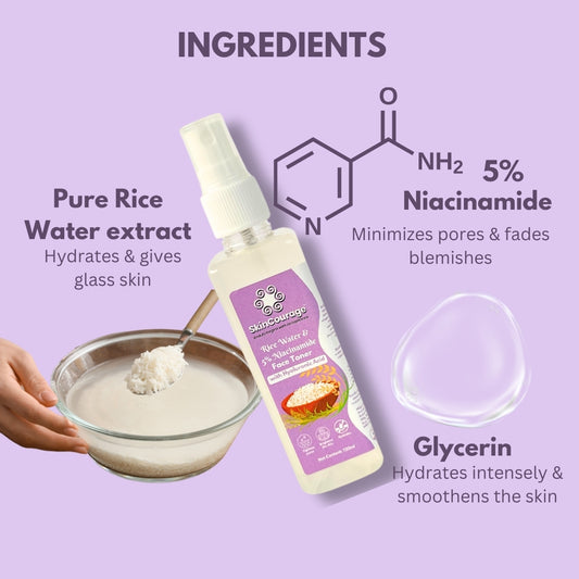 SkinCourage Rice Water & 5% Niacinamide Face Toner | With Rice Ferment Extract | Korean Face Toner Mist For Glass Skin | Hydrating and Pore tightening | For Men and Women | All Skin Types | 120ml
