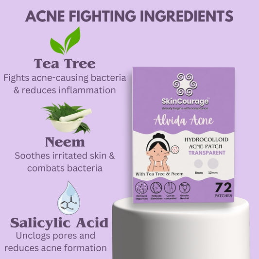 Alvida Acne - Hydrocolloid Acne Pimple Patches with Tea Tree, Neem & Salicylic Acid | 2 Sizes (72 dots)